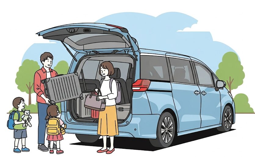 家族での旅行や空港への送迎など、スーツケースを運ぶ機会も多いでしょう。ヴェルファイアの広大な荷室は、こうしたシーンでも頼りになります。